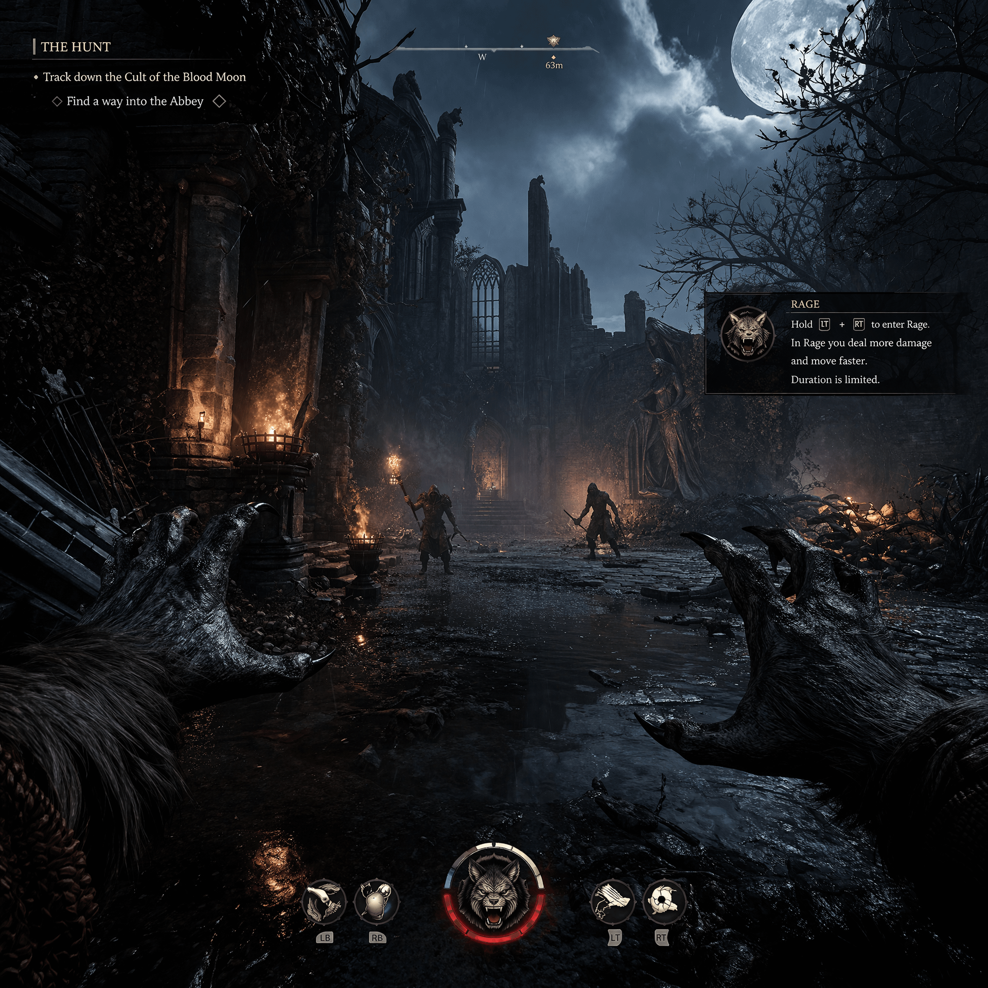 GPT Image 2还擅长生成不存在的游戏截图。一个关于*"a screenshot showing gameplay footage of a first person view werewolf AAA game, made with a proprietary game engine, dark gothic visual theme, mid-gameplay UI and footage"*的提示词产出了看起来像是一款精心制作的未发布游戏的真实画面。